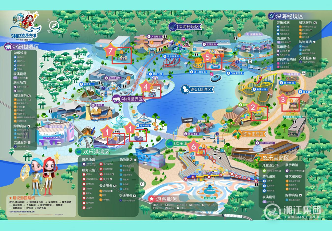長沙湘江歡樂海洋公園位于湘江歡樂城西南,西臨潭州大道,南臨星光路,北臨桐溪路,是長沙市和湘江新區(qū)重大投資項目。總占地面積約30萬平方米(約450畝),其中陸地面積約20萬平方米,地處中心區(qū)域的桐溪湖水系面積約10萬平方米,總建筑面積約7.8萬平,包含6個展示場館、2個大型海洋動物互動體驗項目、1個特效影院、18項大中型游樂設(shè)備。公園定位為國內(nèi)一流的第五代海洋主題大型文旅產(chǎn)品及沉浸式文旅研學(xué)基地,圍繞海洋文化特色,分為“歡樂港灣”、“悠樂寶島”、“深海秘境”、“冰紛世界”和“奇幻湖泊”五個主題區(qū)域,匯聚北極熊、白鯨、海豚、海象、海獅、帝王企鵝等十幾種大型珍稀瀕危的極地、海洋動物,近三萬尾海洋觀賞魚類,成為華中地區(qū)展示海洋生物品種最多、水體體量最大的海洋主題公園。公園集海洋和極地動物展示、機械游樂和多媒體體驗、主題演藝、海洋文化科普為一體,突顯歡樂海洋、科技海洋、創(chuàng)新海洋的特色,將歡樂體驗注入無處不在的海洋夢幻之旅中。