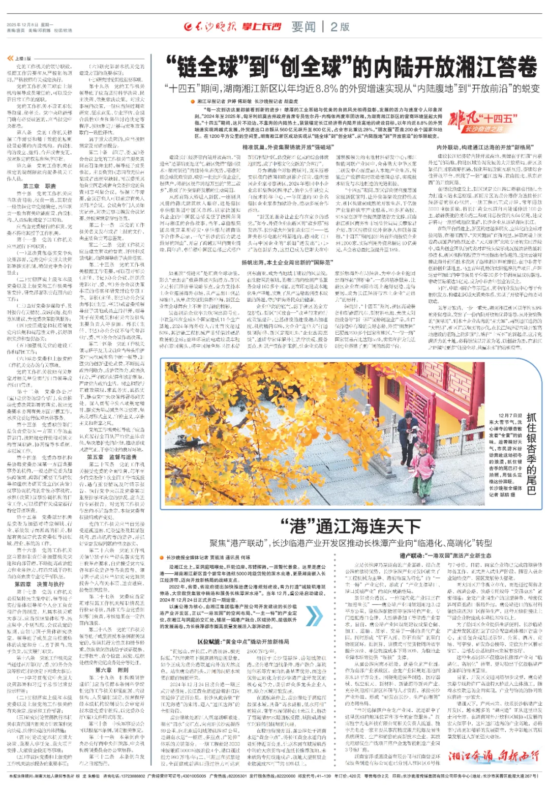 以虞公港為核心,由湘江集團(tuán)臨港產(chǎn)投公司開發(fā)建設(shè)的長沙臨港產(chǎn)業(yè)開發(fā)區(qū),正以“一港雙園”的空間布局、“一主一特”的產(chǎn)業(yè)定位,在湘江與洞庭的交匯處,鋪展一幅港產(chǎn)融合、區(qū)域協(xié)同、能級(jí)躍升的發(fā)展畫卷,為長株潭都市圈高質(zhì)量發(fā)展注入澎湃動(dòng)能。近日,《長沙晚報(bào)》走進(jìn)長沙臨港產(chǎn)業(yè)開發(fā)區(qū),探秘這座位于湖南水運(yùn)“黃金中點(diǎn)”開放新高地的獨(dú)特優(yōu)勢并專題報(bào)道。放眼長沙臨港產(chǎn)業(yè)開發(fā)區(qū),越來越多的“湖南造”正從這里出發(fā)走向全球。 2025-12-08